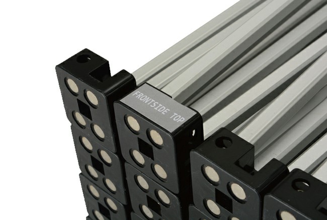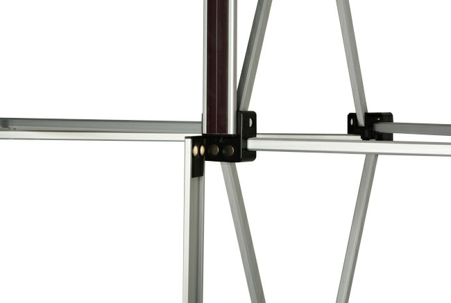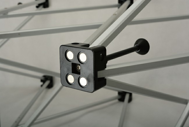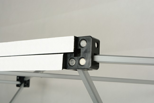 Struttura portante in tubo di alluminio pieghevole facile e veloce da assemblare con tutti i pannelli dotati di nastro magnetico.